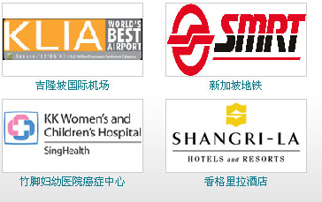 服务过的客户有广州香格里拉大酒店、云顶第一世界大酒店、吉隆坡国际机场、马来西亚双威酒店、新加坡地铁、东方文华大酒店等等知名客户。