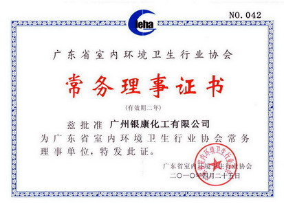 我公司于2010年4月25日获得《广东省室内环境卫生行业协会常务理事证书》,正式成为广东省室内环境卫生行业协会常务理事单位。