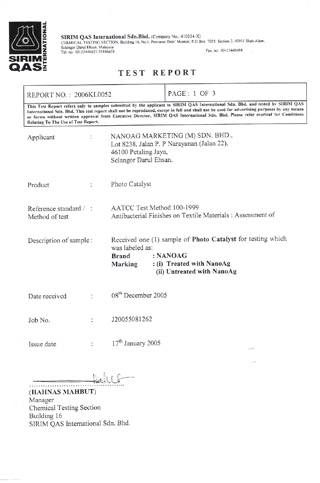 马来西亚SIRIM-银康二氧化钛的检测报告