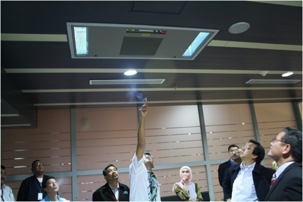 马来西亚卫生部部长(右二)在我司负责人陪同下于吉隆坡国际机场现场考察银康净化机实用效果