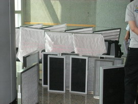 客户名称:香港九龙城法院 项目名称:在风柜安装DF过滤网 工程现场图片: 香港九龙城法院大楼 没有安装DF过滤网的风柜 在口袋式过滤网上喷涂银康涂层 DF过滤盒 DF口袋式过滤网 中效过滤网和初效过滤网 正在安装过滤网的框架 安装好DF过滤网的风柜 安装好了DF初效过滤网 安装好了DF中效过滤网