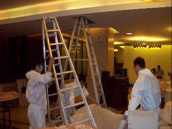 工程概况:为金桥酒店的餐厅进行了中央空调系统的清洗(包括风管、风机盘管、过滤网等)。