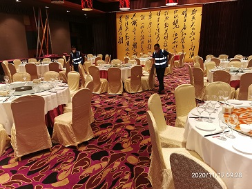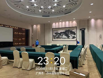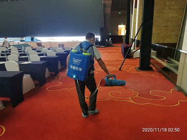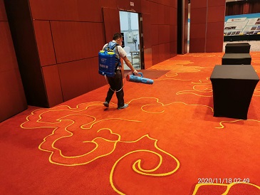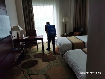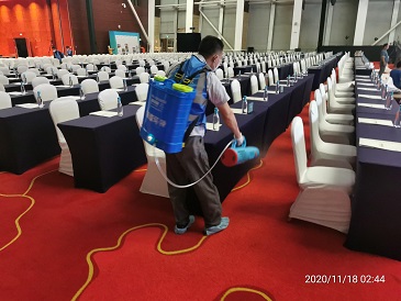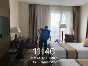 2020年11月16日-18日,银康对广州白云国际会议中心-水务论坛活动现?。壕频昕头?、水务论坛珠江厅、东方厅、分会场以及餐饮包厢进行防疫消毒服务。以下是进行消毒服务的相关图片: 酒店客房消毒: 珠江厅消毒: 东方厅消毒: 分会场消毒: 餐饮包厢消毒:
