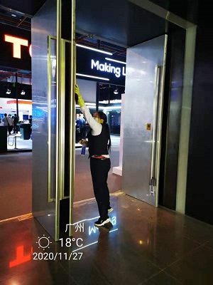 2020年11月23日-28日,银康进行南丰国际会展中心-世界5G大会的展馆保洁以及防疫消毒服务。以下是进行保洁及消毒服务的相关图片: