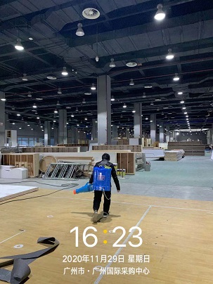 2020年11月29日至12月7日,银康进行广州国际采购中心展馆-广州设计周展会保洁及防疫消毒服务。