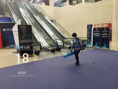 2020年12月18日,银康对广州白云国际会议中心-海交会活动现场进行:东方厅、花城厅、珠江厅及3号楼大堂进行防疫消毒服务。以下是进行消毒服务的相关图片: 东方厅消毒: 花城厅消毒: 珠江厅消毒: 3号楼大堂消毒:
