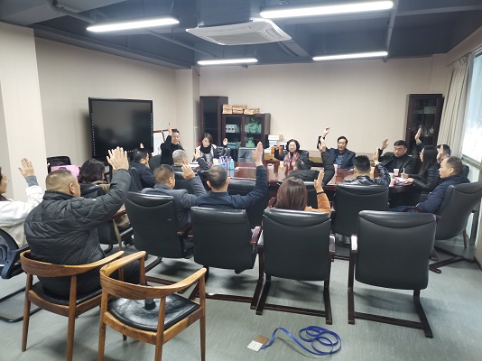 同心追梦商会策,聚势谋远续华章。今天上午十点整,商会换届工作走向最坚实的一步:依据商会章程和法定程序,在珠江道筹备处召开了第一届商会工作总结和换届工作进度说明会。平顶山驻广深办事处雷主任,韩科长,邢主任,商会秘书长,上一届老会员出席会议并讲话,重要决议大家举手表决做出决定。