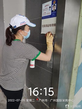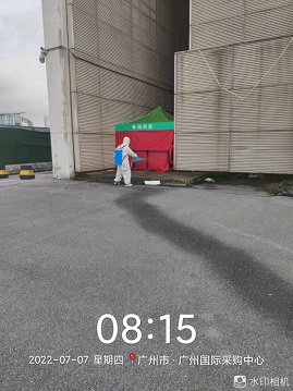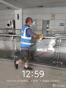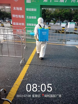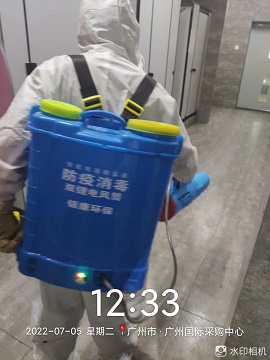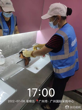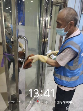 2022年7月5-11日,银康承包广州国际采购中心-2022年第十二届遮阳门窗展览会保洁及防疫消毒服务。