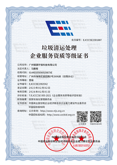垃圾清运处理企业服务资质等级证书